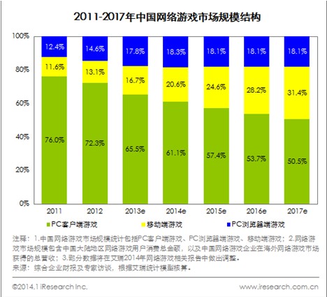 市场结构:网页游戏、移动游戏市场份额大幅增加,未来继续扩大